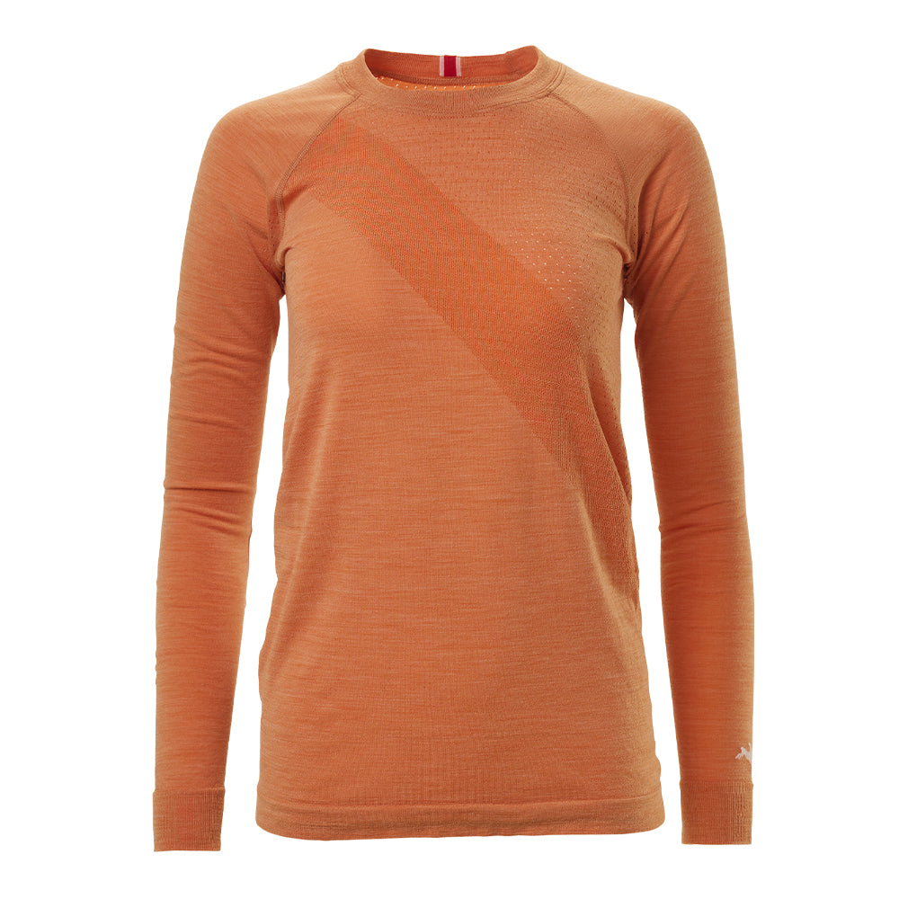 Tracksmith's best-selling Women's Brighton Base Layer features an engineered Merino mesh that’s more open around your core, with a closed knit on the sleeves for a bit more warmth in your extremities. Designed specifically as a training base layer to be worn under a mid-layer or a jacket, but its seamless construction gives it a comfortable, flattering fit that’s not too tight to wear all by itself.