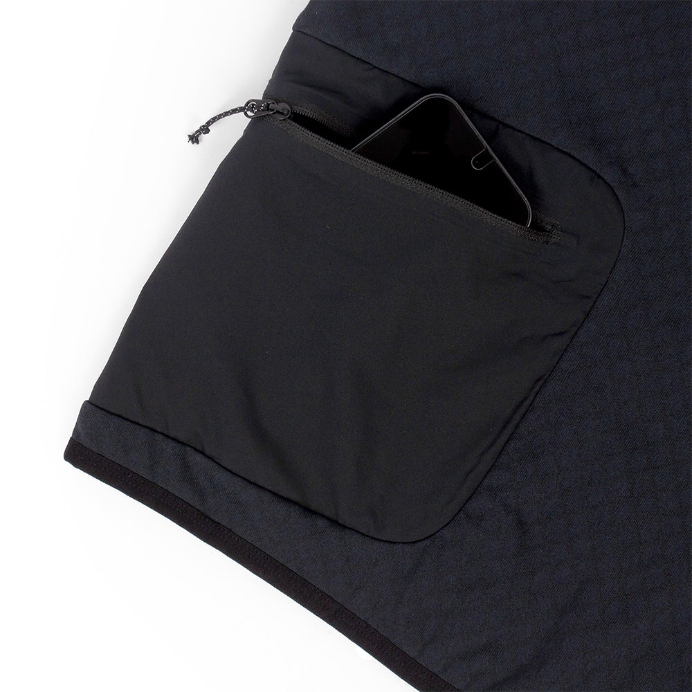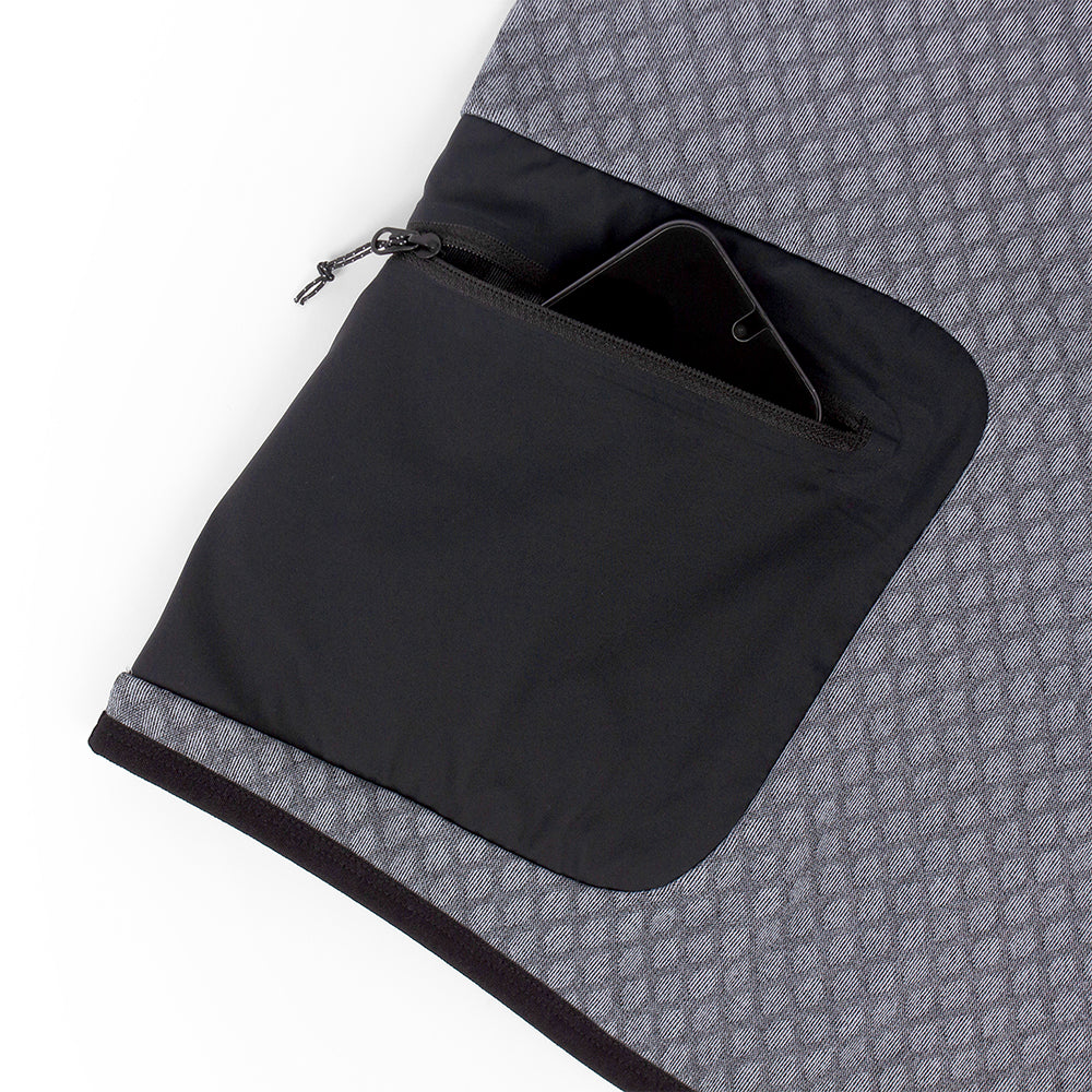 COOLmatic | EXP DIAMAfleece anchors the performance via a lightweight diamond grid of recycled polyester pile for warmth. Imbedded carbon pushes temperature control to another level. The diamond grid, allows for maximum breathability as well as extra weight reduction. We added two way half zip for customized ventilation and versatility. Reflective details. the large side pocket, and internal phone pocket keep run hands free. Oh, speaking of hands. Check the cuffs and get back to us (seriously, have a look).